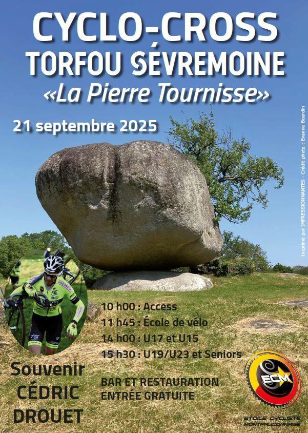 Le Dimanche 21 Septembre 2025, l'ECM organise son cyclo-cross " Souvenir Cédric DROUET" sur la commune de Torfou à la pierre Tournisse.