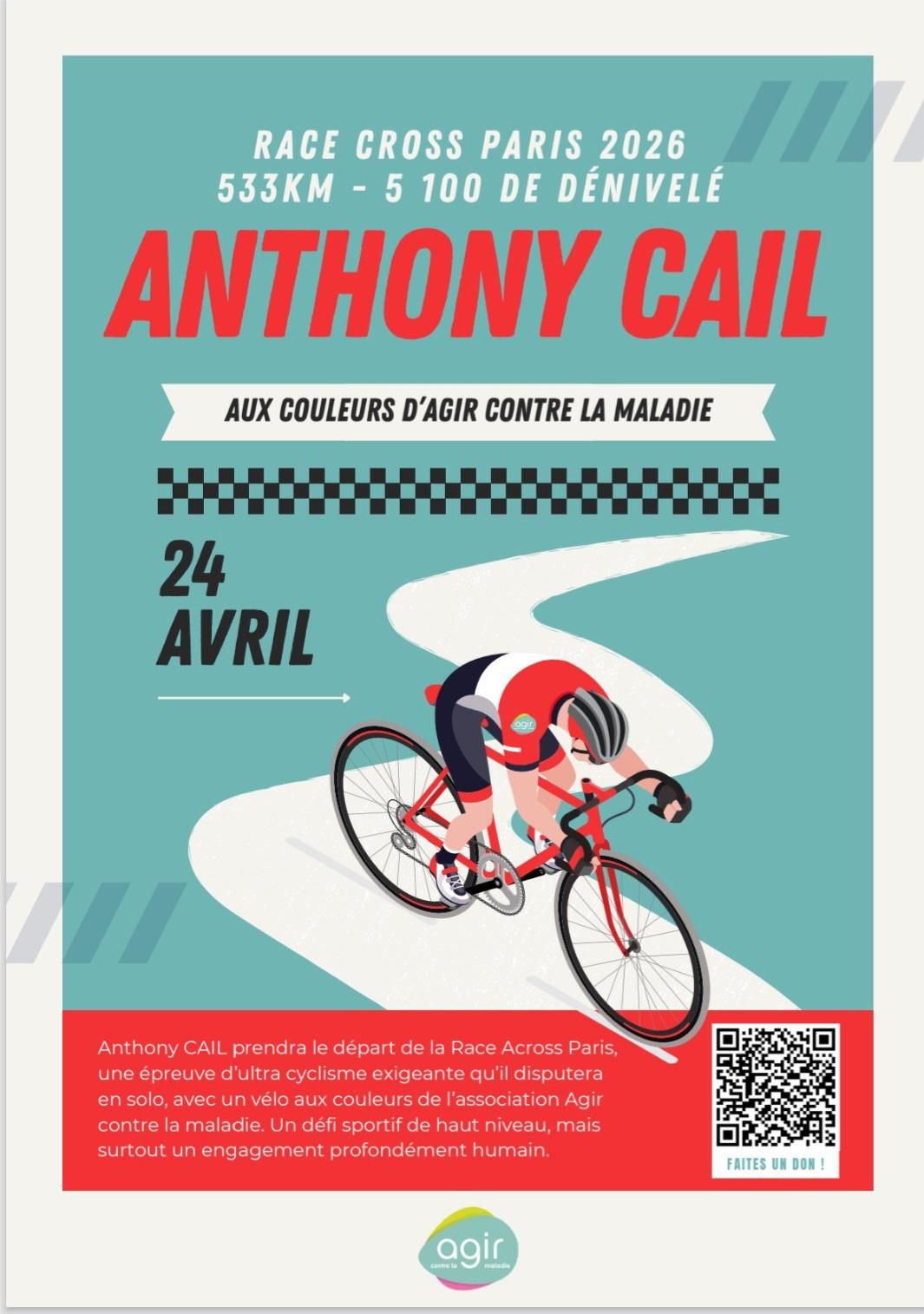Le 24 Avril 2026, Anthony Cail prendra le départ de la Race Across Paris pour 533 km.